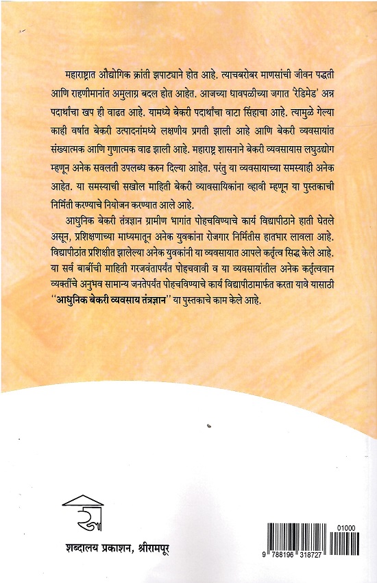 महाराष्ट्रात औद्योगिक क्रांती झपाट्याने होत आहे. त्याचबरोबर माणसांची जीवन पद्धती आणि राहणीमानांत अमुलाग्र बदल होत आहेत. आजच्या धावपळीच्या जगात ‘रेडिमेड’ अन्न पदार्थांचा खप ही वाढत आहे. यामध्ये बेकरी पदार्थांचा वाटा सिंहाचा आहे. त्यामुळे गेल्या काही वर्षात बेकरी उत्पादनांमध्ये लक्षणीय प्रगती झाली आहे आणि बेकरी व्यवसायांत संख्यात्मक आणि गुणात्मक वाढ झाली आहे. महाराष्ट्र शासनाने बेकरी व्यवसायास लघुउद्योग म्हणून अनेक सवलती उपलब्ध करुन दिल्या आहेत. परंतु या व्यवसायाच्या समस्याही अनेक आहेत. या समस्याची सखोल माहिती बेकरी व्यावसायिकांना व्हावी म्हणून या पुस्तकाची निर्मिती करण्याचे नियोजन करण्यात आले आहे.
