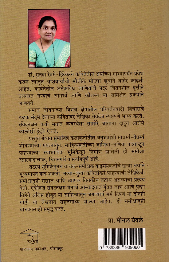 प्रस्तुत ग्रंथात समाविष्ट कलाकृतीतील अनुभवांशी साधर्म्य-वैधर्म्य शोधण्याच्या प्रयत्नातून, साहित्यकृतींच्या जाणिवा उणिवा पडताळून पाहण्याच्या स्वाभाविक भूमिकेतून निर्माण झालेली ही समीक्षा रसास्वादात्मक, चिंतनगर्भ व सर्वांगपूर्ण आहे. तटस्थ भूमिकेतूनच वाचक-समीक्षक वाङ्मयकृतींचे खऱ्या अर्थाने . मूल्यमापन करू शकतो. नव्या-जुन्या कवितांकडे पाहण्याची लेखिकेची समीक्षादृष्टी सखोल आणि व्यापक तितकीच तटस्थ असल्याचा प्रत्यय येतो. एकीकडे संवेदनक्षम मनाचं आस्वादनात गुंतत जाणं आणि पुन्हा निष्ठेने अलिप्त होवून या साहित्यातून जगण्याचं मर्म टिपणं या दोनही गोष्टी या लेखनात सहजसाध्य झाल्या आहेत. ही समीक्षादृष्टी वाचकालाही समृद्ध करते.- प्रा. मीनल येवले