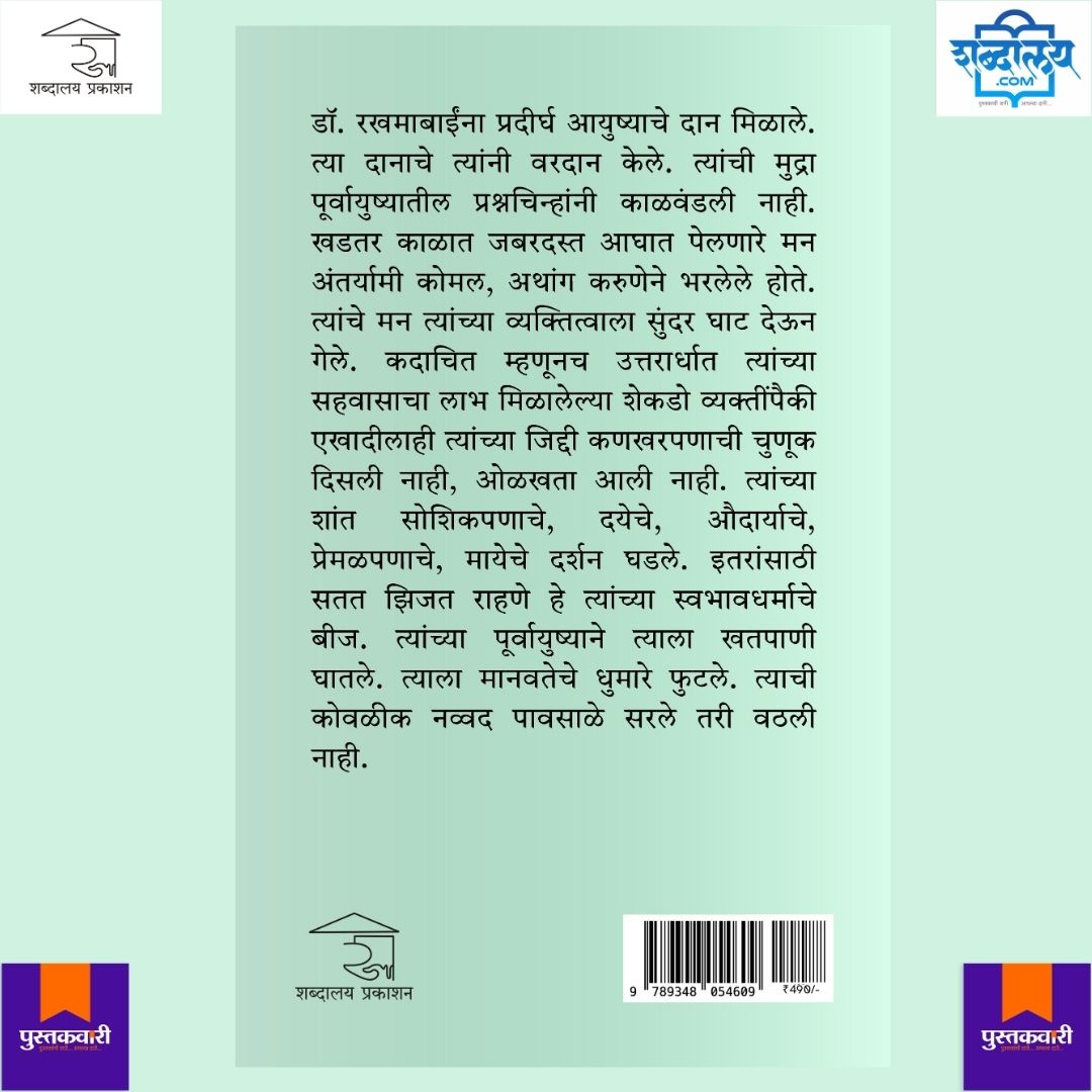 डॉ. रखमाबाईंना प्रदीर्घ आयुष्याचे दान मिळाले. त्या दानाचे त्यांनी वरदान केले. त्यांची मुद्रा पूर्वायुष्यातील प्रश्नचिन्हांनी काळवंडली नाही. खडतर काळात जबरदस्त आघात पेलणारे मन अंतर्यामी कोमल, अथांग करुणेने भरलेले होते. त्यांचे मन त्यांच्या व्यक्तित्वाला सुंदर घाट देऊन गेले. कदाचित म्हणूनच उत्तरार्धात त्यांच्या सहवासाचा लाभ मिळालेल्या शेकडो व्यक्तींपैकी एखादीलाही त्यांच्या जिद्दी कणखरपणाची चुणूक दिसली नाही, ओळखता आली नाही. त्यांच्या शांत सोशिकपणाचे, दयेचे, औदार्याचे, प्रेमळपणाचे, मायेचे दर्शन घडले. इतरांसाठी सतत झिजत राहणे हे त्यांच्या स्वभावधर्माचे बीज. त्यांच्या पूर्वायुष्याने त्याला खतपाणी घातले. त्याला मानवतेचे धुमारे फुटले. त्याची कोवळीक नव्वद पावसाळे सरले तरी वठली नाही.