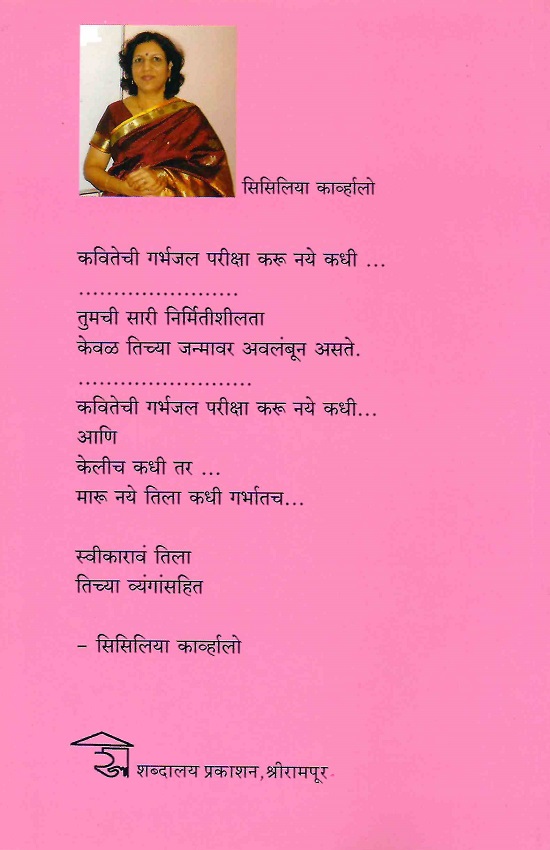कवितेची गर्भजल परीक्षा करू नये कधी … तुमची सारी निर्मितीशीलता केवळ तिच्या जन्मावर अवलंबून असते. कवितेची गर्भजल परीक्षा करू नये कधी… आणि केलीच कधी तर … मारू नये तिला कधी गर्भातच… स्वीकारावं तिला तिच्या व्यंगांसहित