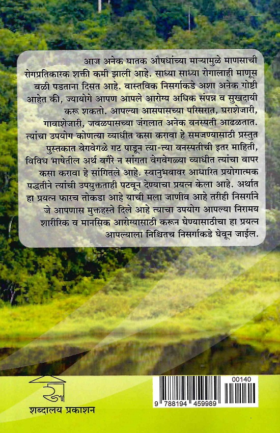 आज अनेक घातक औषधांच्या माऱ्यामुळे माणसाची रोगप्रतिकारक शक्ती कमी झाली आहे. साध्या साध्या रोगालाही माणूस बळी पडताना दिसत आहे. वास्तविक निसर्गाकडे अशा अनेक गोष्टी आहेत की, ज्यायोगे आपण आपले आरोग्य अधिक संपन्न व सुखदायी करू शकतो. आपल्या आसपासच्या परिसरात, घराशेजारी, गावाशेजारी, जवळपासच्या जंगलात अनेक वनस्पती आढळतात. त्यांचा उपयोग कोणत्या व्याधीत कसा करावा हे समजण्यासाठी प्रस्तुत पुस्तकात वेगवेगळे गट पाडून त्या-त्या वनस्पतीची इतर माहिती, विविध भाषेतील अर्थ वगैरे न सांगता वेगवेगळ्या व्याधीत त्यांचा वापर कसा करावा हे सांगितले आहे. स्वानुभवावर आधारित प्रयोगात्मक पद्धतीने त्यांची उपयुक्तताही पटवून देण्याचा प्रयत्न केला आहे. अर्थात हा प्रयत्न फारच तोकडा आहे याची मला जाणीव आहे तरीही निसर्गाने जे आपणास मुक्तहस्ते दिले आहे त्याचा उपयोग आपल्या निरामय शारीरिक व मानसिक आरोग्यासाठी करून घेण्यासाठीचा हा प्रयत्न आपल्याला निश्चितच निसर्गाकडे घेवून जाईल.