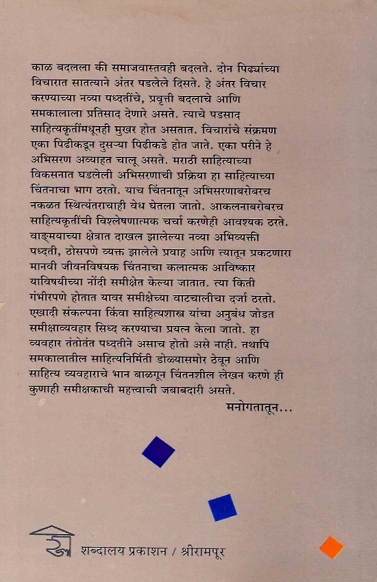 काळ बदलला की समाजवास्तवही बदलते. दोन पिढ्यांच्या विचारात सातत्याने अंतर पडलेले दिसते. हे अंतर विचार करण्याच्या नव्या पध्दतींचे, प्रवृत्ती बदलाचे आणि समकालाला प्रतिसाद देणारे असते. त्याचे पडसाद साहित्यकृतींमधूनही मुखर होत असतात. विचारांचे संक्रमण एका पिढीकडून दुसऱ्या पिढीकडे होत जाते. एका परीने हे अभिसरण अव्याहत चालू असते. मराठी साहित्याच्या विकसनात घडलेली अभिसरणाची प्रक्रिया हा साहित्याच्या चिंतनाचा भाग ठरतो. याच चिंतनातून अभिसरणाबरोबरच नकळत स्थित्यंतराचाही वेध घेतला जातो. आकलनाबरोबरच साहित्यकृतींची विश्लेषणात्मक चर्चा करणेही आवश्यक ठरते. वाङ्मयाच्या क्षेत्रात दाखल झालेल्या नव्या अभिव्यक्ती पध्दती, ठोसपणे व्यक्त झालेले प्रवाह आणि त्यातून प्रकटणारा मानवी जीवनविषयक चिंतनाचा कलात्मक आविष्कार याविषयीच्या नोंदी समीक्षेत केल्या जातात. त्या किती गंभीरपणे होतात यावर समीक्षेच्या वाटचालीचा दर्जा ठरतो. एखादी संकल्पना किंवा साहित्यशास्त्र यांचा अनुबंध जोडत समीक्षाव्यवहार सिध्द करण्याचा प्रयत्न केला जातो. हा व्यवहार तंतोतंत पध्दतीने असाच होतो असे नाही. तथापि समकालातील साहित्यनिर्मिती डोळ्यासमोर ठेवून आणि साहित्य व्यवहाराचे भान बाळगून चिंतनशील लेखन करणे ही कुणाही समीक्षकाची महत्त्वाची जबाबदारी असते.