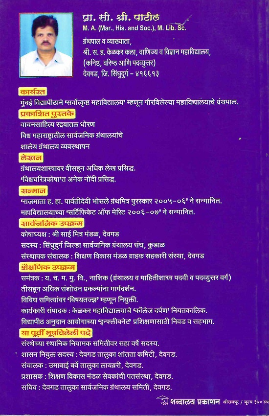 प्रा. सी. श्री. पाटील A. (Mar., His. and Soc.), M. Lib. Sc.