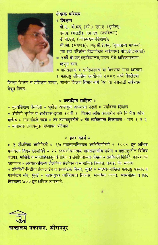बी.ए., बी.एड्. (स्पे.); एम्. ए. (भूगोल); एम्. ए. (मराठी), एम. एड्. (तंत्रविज्ञान); डी.पी.एड्. (लोकसंख्या- शिक्षण); सी.ओ. (संगणक); एफ्. सी. ई. एम्. (दृकश्राव्य माध्यम); ( या सर्व परिक्षांना विद्यापीठात सर्वप्रथम) पीच्.डी. (मराठी) * ९ वर्षे बी.एड्. महाविद्यालय, पाटण येथे अधिव्याख्याता म्हणून काम. * मानसशास्त्र व संमोहनशास्त्र या विषयाचा गाढा अभ्यास. * महाराष्ट्र लोकसेवा आयोगाने २००१ मध्ये घेतलेल्या जिल्हा शिक्षण व प्रशिक्षण शाखा, शालेय शिक्षण विभाग वर्ग ‘अ’ या पदासाठी सर्वप्रथम येवून निवड. * प्रकाशित साहित्य * मूल्यशिक्षण दैनंदिनी * भूगोल आशयुक्त अध्यापन पद्धती पर्यावरण शिक्षण *ओबीसी भूगोल व अर्थशास्त्र इयत्ता १०वी * थिअरी ऑफ कोलोरोम फॉर दि पीस ऑफ माईन्ड *निसर्गाकडे चला *तंत्र तणावमुक्तीचे *तंत्र व्यक्तिमत्व विकासाचे – भाग १ व २ *मानसिक तणावमुक्त अध्यापन प्रतिमान * इतर कार्य * ३ शैक्षणिक ध्वनिफिती १७ पर्यावरणविषयक ध्वनिचित्रफिती * १००० हून अधिक पर्यावरण विषय छायाचित्रे * २२ स्वसंशोधनात्मक मानसशास्त्रीय प्रयोग * महाराष्ट्रातील विविध वृत्तपत्र, मासिके व साप्ताहिकातून वैचारिक व संशोधनात्मक लेखन * सर्वांसाठी शिबिरे, कार्यशाळा आयोजन* अध्यक्ष-संकल्प शैक्षणिक संशोधन व सामाजिक विकास, कराड, जि. सातारा * प्रतिनिधी-मिडीया हेल्पलाईन व इनफोटेक फिचर, मुंबई पत्रलेखन संघ, मुंबई महाराष्ट्रभर व्यक्तिमत्त्व विकास, विषयावर ७०० हून अधिक व्याख्याने.