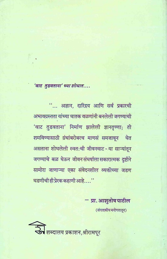 “… अज्ञान, दारिद्रय आणि सर्व प्रकारची अभावग्रस्तता यांच्या घातक वळणांनी बनलेली जगण्याची ‘वाट तुडवताना’ निर्माण झालेली ज्ञानतृष्णा; ती शमविण्यासाठी ग्रंथांबरोबरच माणसं समजावून घेत असताना शोधलेली स्वत:ची जीवनवाट या साऱ्यांतून जगण्याचे बळ घेऊन जीवन संघर्षाला सकारात्मक दृष्टीने सामोरा जाणाऱ्या एका संवेदनशील व्यक्तीच्या जडण घडणीची ही प्रेरक कहाणी आहे….’