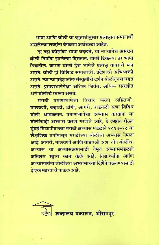 मराठी प्रमाणभाषेचा विचार करता अहिराणी, मालवणी, वऱ्हाडी, डांगी, आगरी, वाडवळी अशा विविध बोली आढळतात. प्रमाणभाषेचा अभ्यास करताना या बोलींचाही अभ्यास करणे गरजेचे आहे, हे लक्षात घेऊन मुंबई विद्यापीठाच्या मराठी अभ्यास मंडळाने २०१७-१८ या शैक्षणिक वर्षापासून मराठीच्या बोलींचा अभ्यास नेमला आहे. आगरी, मालवणी आणि वाडवळी अशा तीन बोलींचा अभ्यास या अभ्यासक्रमासाठी नेमून अभ्यासमंडळाने अतिशय स्तुत्य काम केले आहे. विद्यार्थ्यांना आणि अभ्यासकांना बोलींच्या अभ्यासाच्या दिशेने वळवण्यासाठी हे एक महत्त्वाचे पाऊल आहे.