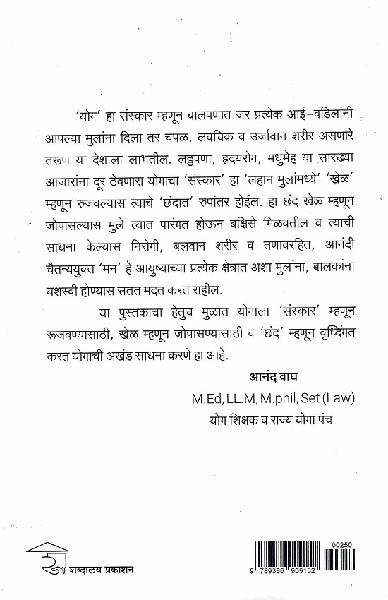 ‘योग’ हा संस्कार म्हणून बालपणात जर प्रत्येक आई-वडिलांनी आपल्या मुलांना दिला तर चपळ, लवचिक व उर्जावान शरीर असणारे तरूण या देशाला लाभतील. लठ्ठपणा, हृदयरोग, मधुमेह या सारख्या आजारांना दूर ठेवणारा योगाचा ‘संस्कार’ हा ‘लहान मुलांमध्ये’ ‘खेळ’ म्हणून रुजवल्यास त्याचे ‘छंदात रुपांतर होईल. हा छंद खेळ म्हणून जोपासल्यास मुले त्यात पारंगत होऊन बक्षिसे मिळवतील व त्याची साधना केल्यास निरोगी, बलवान शरीर व तणावरहित, आनंदी चैतन्ययुक्त ‘मन’ हे आयुष्याच्या प्रत्येक क्षेत्रात अशा मुलांना, बालकांना यशस्वी होण्यास सतत मदत करत राहील. या पुस्तकाचा हेतुच मुळात योगाला ‘संस्कार’ म्हणून रूजवण्यासाठी, खेळ म्हणून जोपासण्यासाठी व ‘छंद’ म्हणून वृध्दिंगत करत योगाची अखंड साधना करणे हा आहे.
